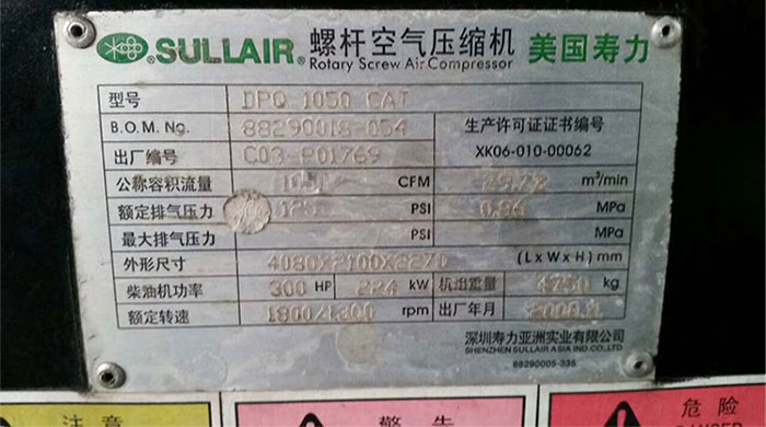 1050kw美国寿力柴油螺杆空压机